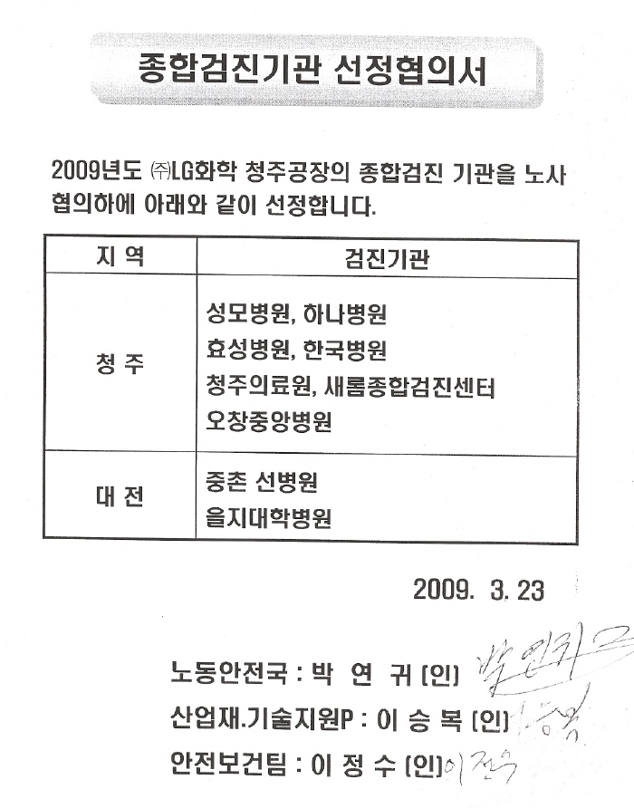 종합검진기관 선정협의서