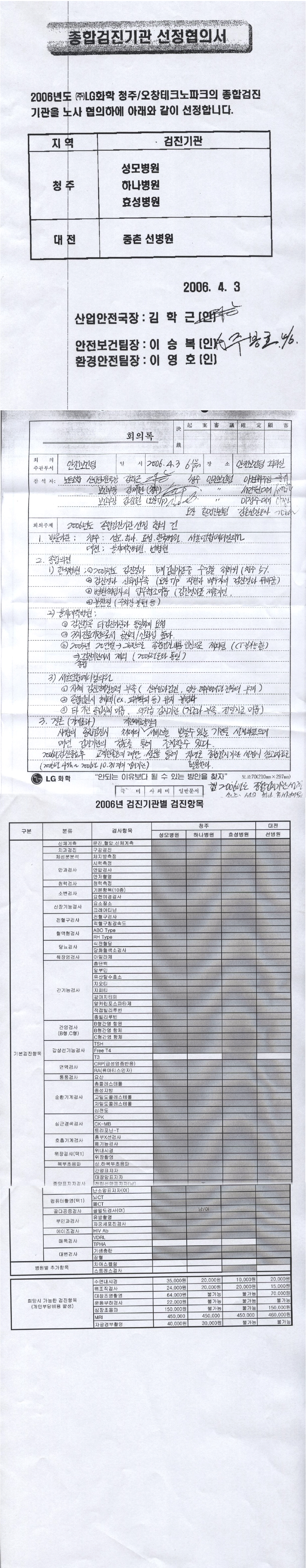 종합검진병원 선정합의서